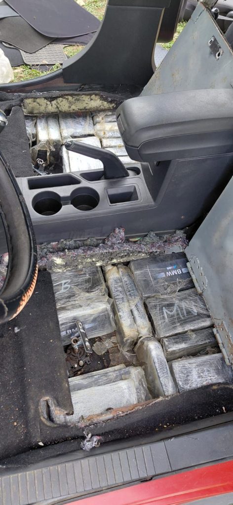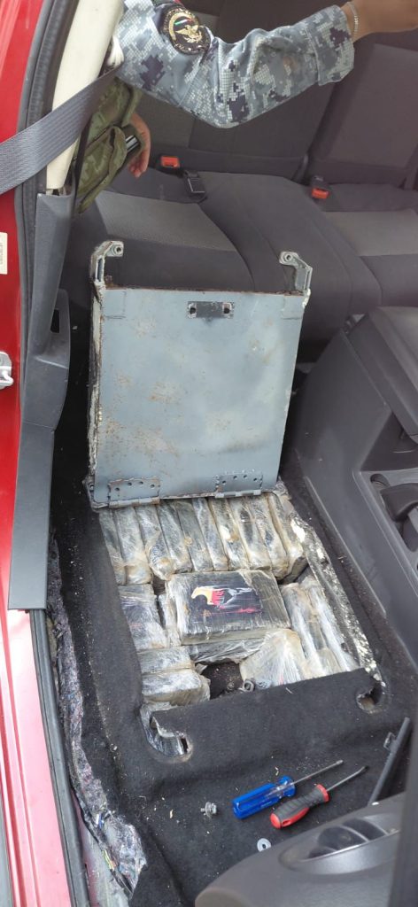 Posteriormente, el vehículo fue puesto a disposición de la Fiscalía General de la República, donde, tras una revisión minuciosa, se detectaron compartimentos ocultos en los que se localizaron un total de 202 paquetes con sustancia con características similares a la cocaína, con un valor estimado de aproximadamente 1.5 millones de dólares.