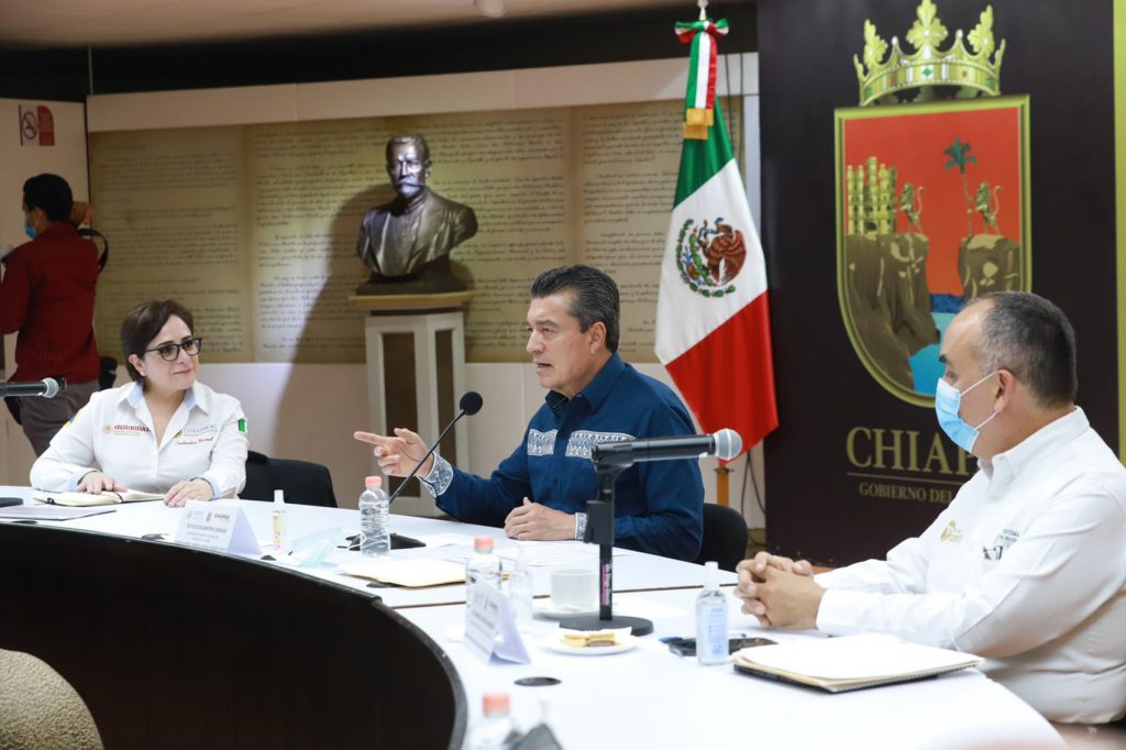Al encabezar una reunión con la titular de la Coordinación Nacional de Protección Civil (CNPC) del Gobierno de México, Laura Velázquez Alzúa, donde se plantearon acciones y sinergias encaminadas a promover la gestión integral de riesgos, a fin de estar debidamente preparados para atender diversas contingencias que ocurran este año en Chiapas, el gobernador Rutilio Escandón Cadenas manifestó el compromiso de su gobierno de seguir procurando estrategias conjuntas que permitan prevenir y salvaguardar la integridad de la gente ante cualquier emergencia que represente un tipo de riesgo.