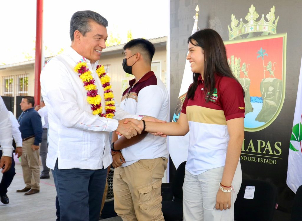 “Todos los planteles del Cecyte Chiapas los hemos remodelado, reconvertido, construido, que conjuntamente con los del telebachillerato comunitario, están en nueva etapa. Vamos a seguirlos apoyando e invirtiendo, estamos muy entusiasmados”, apuntó al tiempo de reconocer el esfuerzo de las madres y padres de familia que contribuyen para que sus hijas e hijos asistan a la escuela, se formen y sean personas de bien.