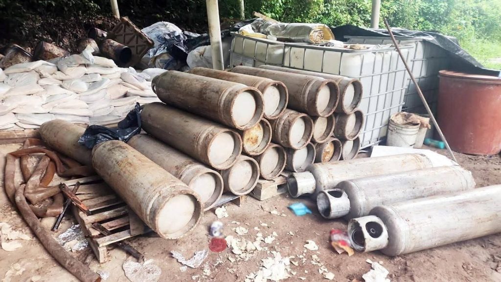 En el predio también se aseguró un arma de fuego, reactores, alrededor de 500 bultos de sosa cáustica, diversas sustancias, dos vehículos, entre otros objetos.