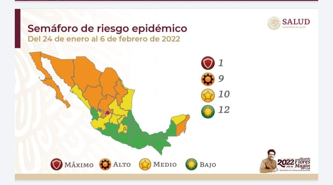 Uno estará en rojo, 9 en naranja, 10 en amarillo, mientras que 12 permanecerán dos semanas más en color verde, dentro de estos sin cambios se encuentra Chiapas.