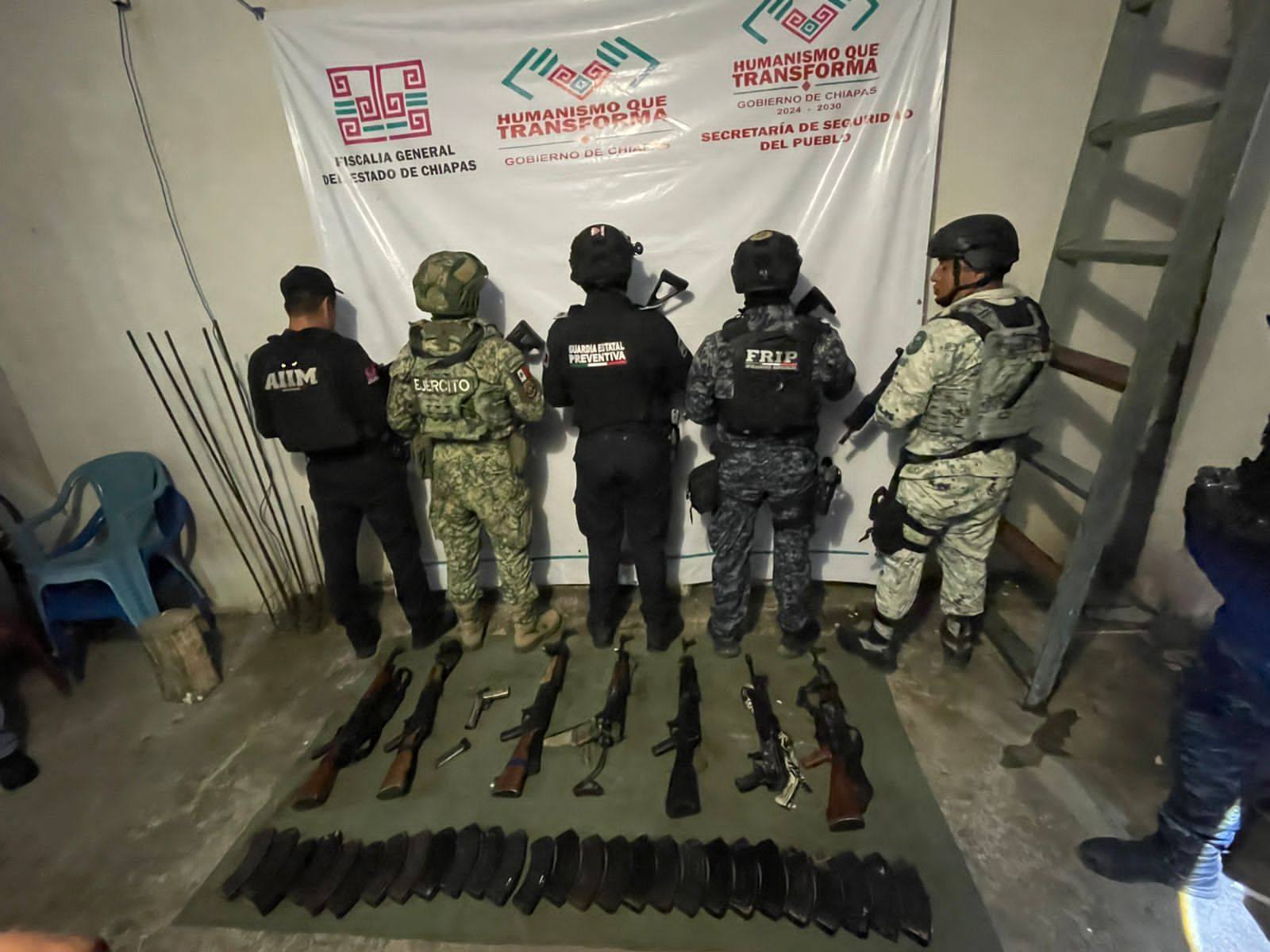 Autoridades decomisan armamento en Amatenango de la Frontera, Chiapas.