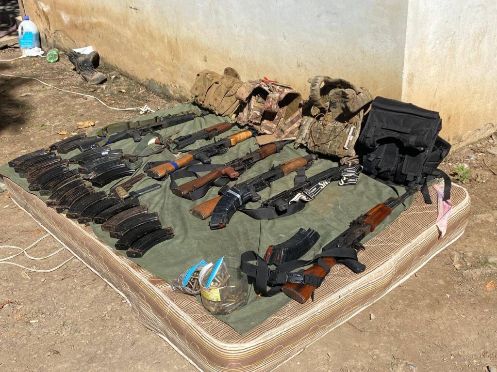 Dentro del aseguramiento están ocho armas de fuego (7 largas y 1 corta), 669 cartuchos, 27 cargadores y cuatro chalecos tácticos.