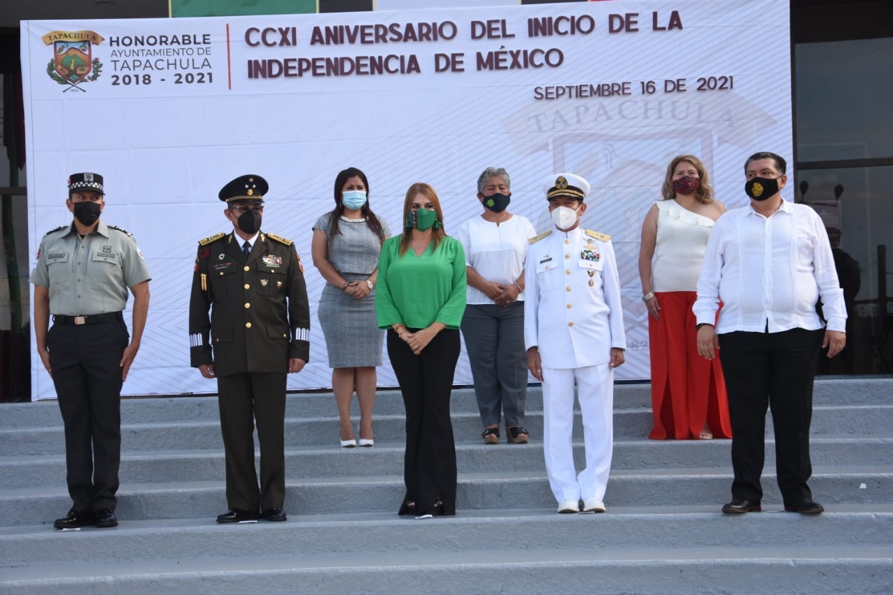 Con una ceremonia cívica, el Ayuntamiento de Tapachula, autoridades civiles y militares, celebraron el 211 aniversario del inicio de la Independencia de México, proceso político y social resuelto con las armas y que puso fin al dominio español en la mayor parte de los territorios de la Nueva España.