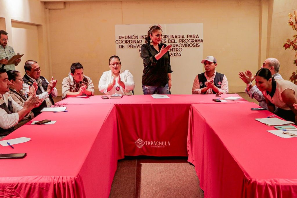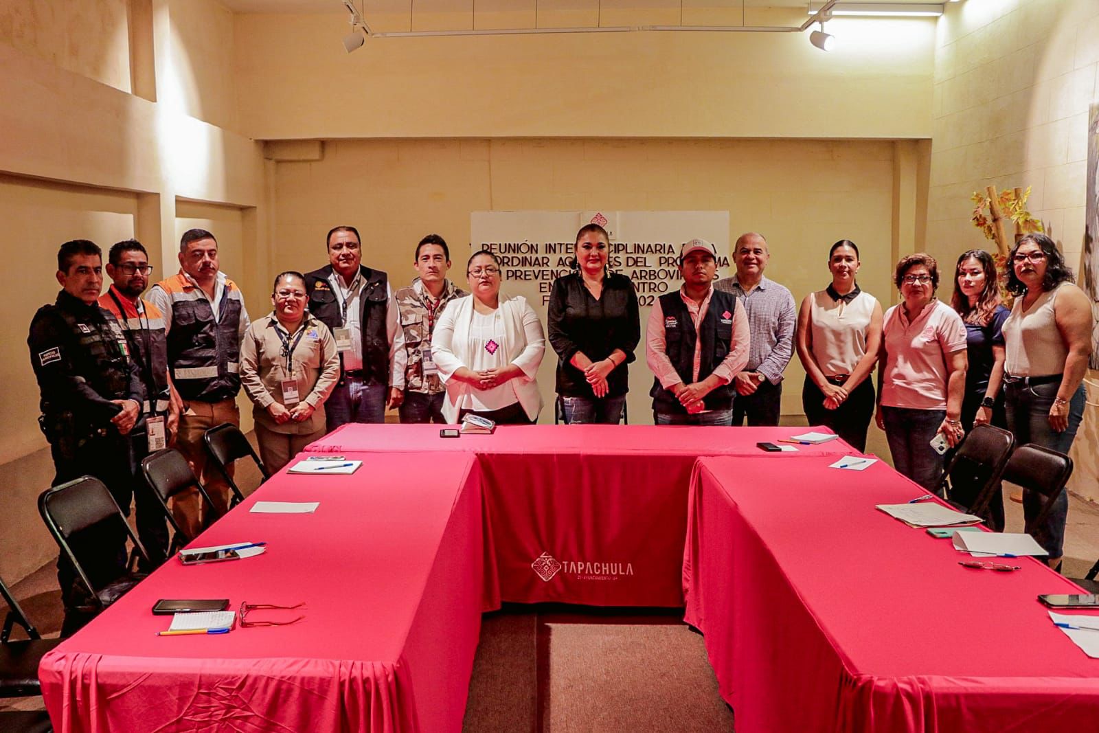 Con el objetivo de dar seguimiento a las actividades de nebulización, descacharrización y control larvario, el Ayuntamiento de Tapachula representado por la presidenta municipal interina, Gladiola Soto Soto en coordinación con el Distrito de Salud No. VII participó en la Reunión Interdisciplinaria del Programa de Prevención de Arbovirosis en Zona Centro.