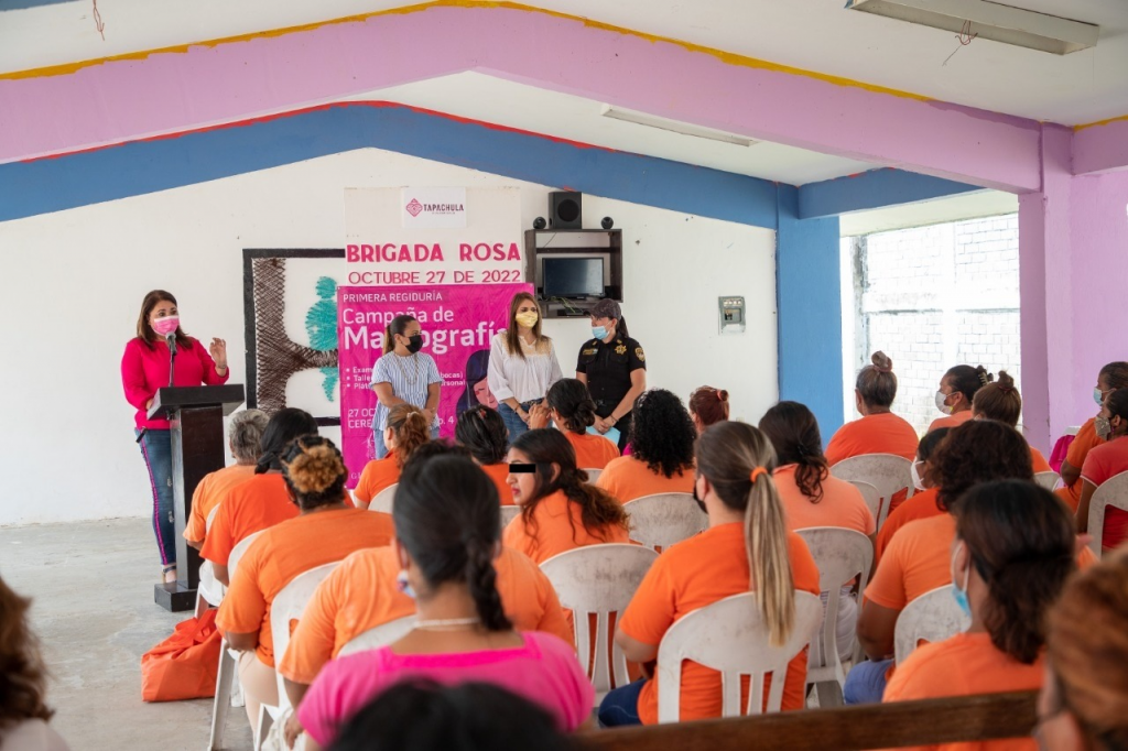 La presidenta municipal de Tapachula, Rosa Irene Urbina Castañeda, encabezó la Brigada Rosa en el Centro de Reinserción Social para Sentenciadas (CERSS 4 Femenil), en el marco de Octubre Rosa, mes de la Lucha contra el Cáncer de Mama.