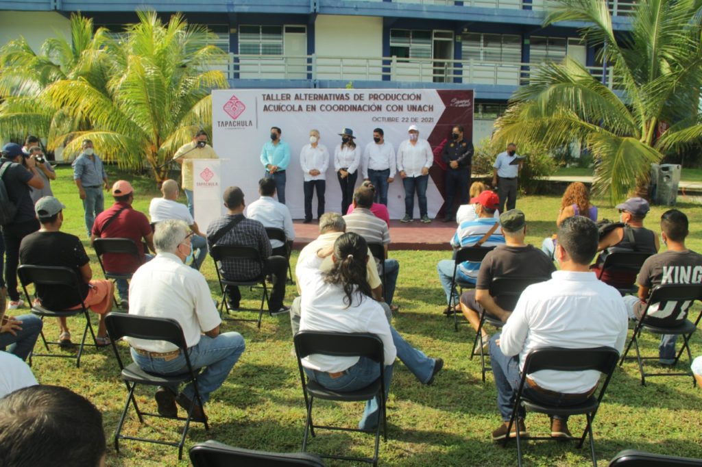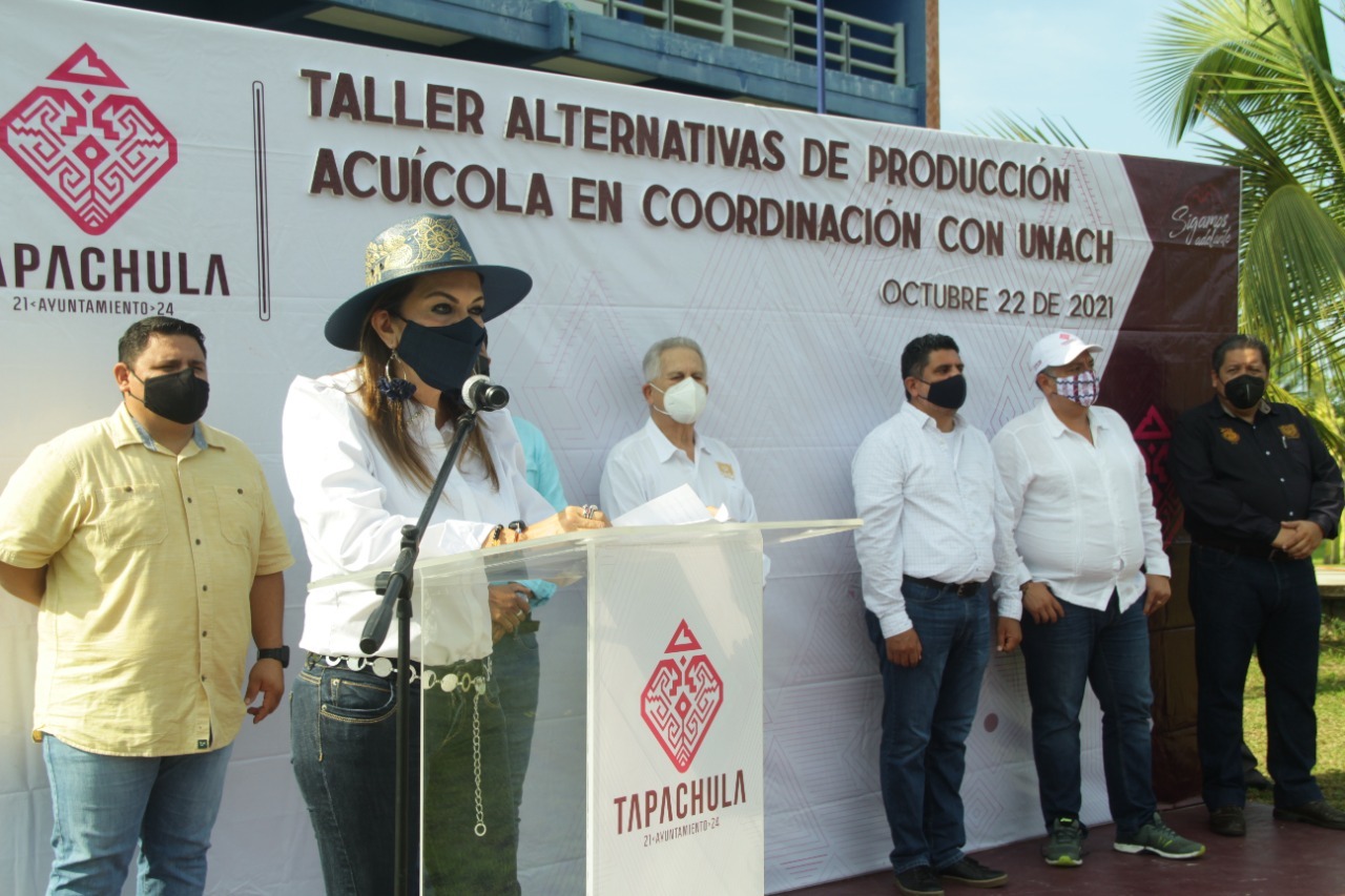 Al poner en marcha los trabajos del curso “Alternativas de Producción Acuícola”, coordinado por el Ayuntamiento de Tapachula y la Universidad Autónoma de Chiapas (UNACH), la presidenta municipal Rosa Irene Urbina Castañeda, aseguró que su administración trabaja para fortalecer los esquemas de capacitación de las zonas rurales, en seguimiento a la estrategia para la reactivación y desarrollo productivo.
