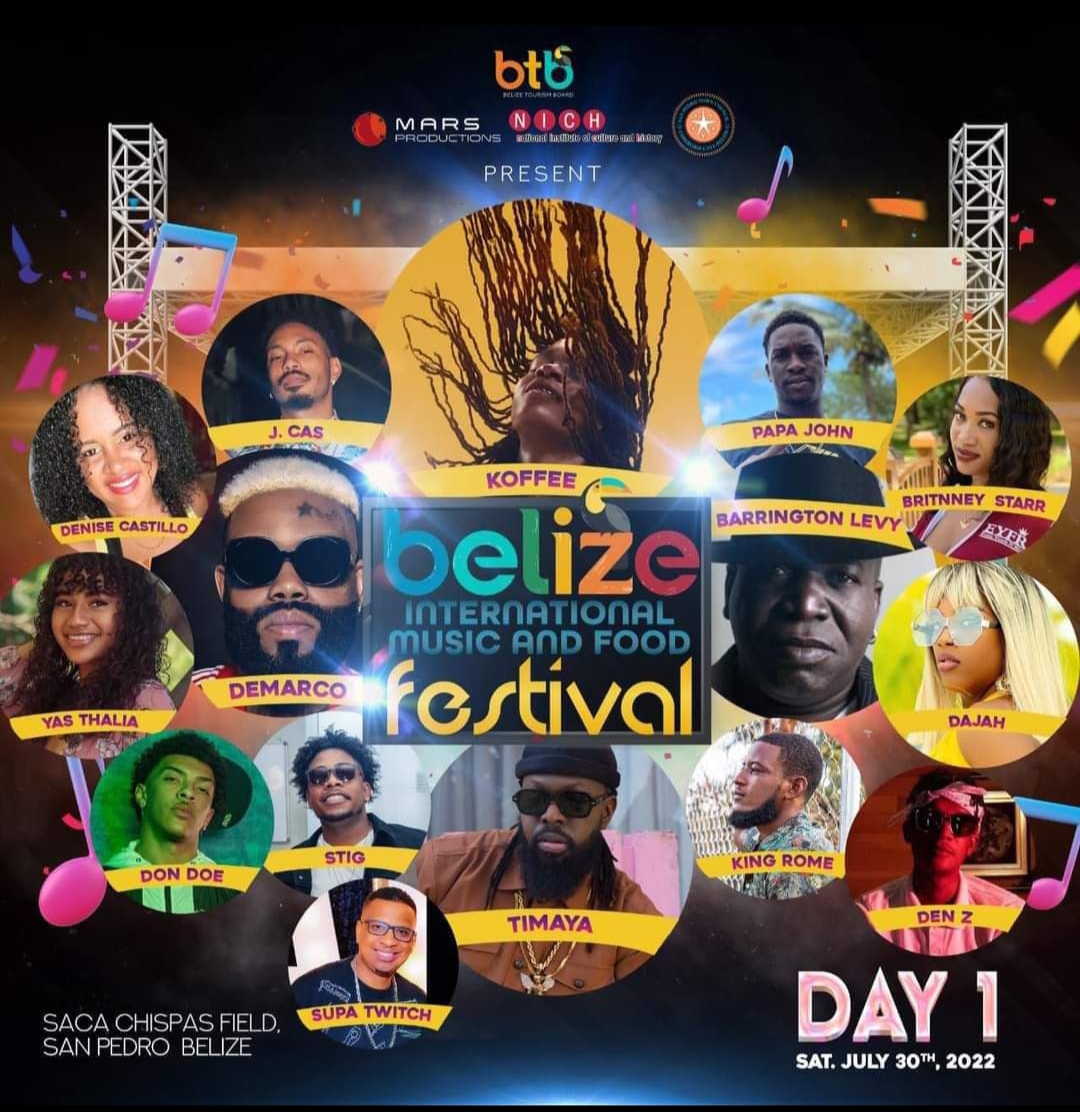 Se presentarán diferentes géneros musicales beliceños e internacionales que van desde Reggae, Afro-Beats, Dancehall, Soca, Punta y ritmos latinos.