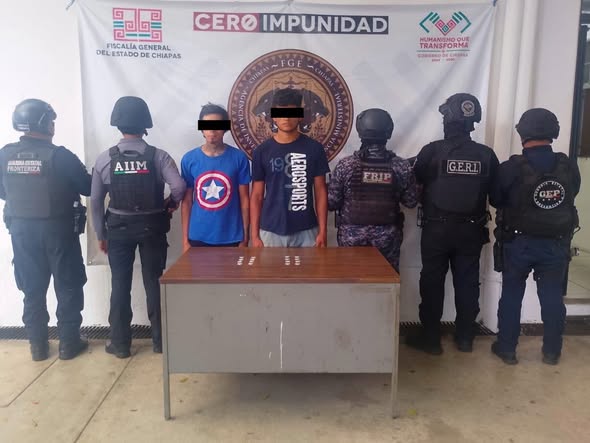 La Secretaría de Seguridad del Pueblo (SSP) a través Fuerza de Reacción Inmediata Pakal (FRIP), la Guardia Estatal Fronteriza, la Guardia Estatal Preventiva coordinación con la Agencia de Investigación e Inteligencia Ministerial (AIIM) de la Fiscalía General del Estado (FGE), detuvieron a dos personas del sexo masculino como presuntos responsables del delito de posesión de narcóticos en el municipio de Tapachula.