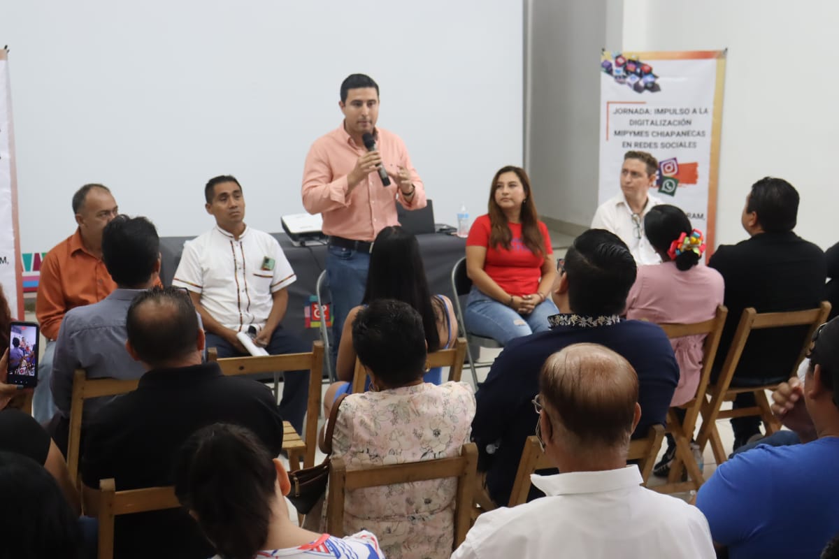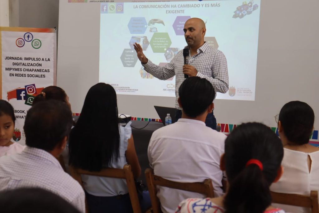 Productores, empresarios y emprendedores de Tuxtla Chico participaron en la Jornada “Impulso a la digitalización de MIPyMes chiapanecas en redes sociales” impartida por la Secretaría de Economía y del Trabajo en coordinación con el Gobierno Municipal.