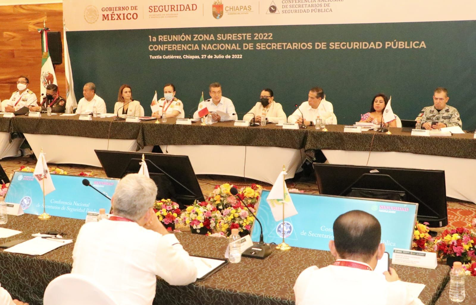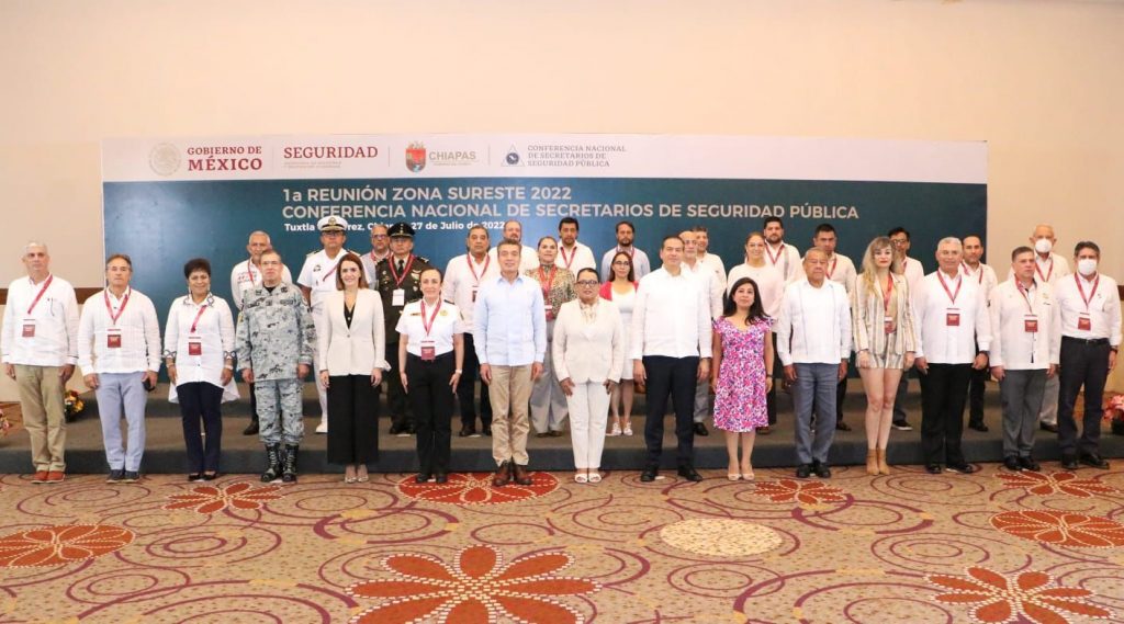 En la 1ª Reunión Regional de la Zona Sureste 2022 de la Conferencia Nacional de Secretarios de Seguridad Pública, a la que asistió la secretaria de Seguridad y Protección Ciudadana, Rosa Icela Rodríguez Velázquez, el gobernador Rutilio Escandón Cadenas destacó que la función del Estado de brindar seguridad pública mediante los tres órdenes de gobierno, está dando resultados positivos, por ello su gobierno está alineado a dicha estrategia nacional.
