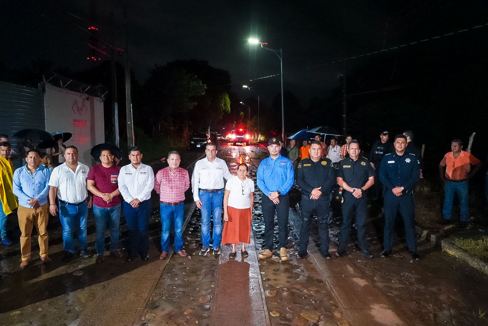 Junto al secretario de Seguridad del Pueblo, Óscar Alberto Aparicio Avendaño, el edil resaltó que su gobierno entrega obras que garantizan la seguridad de las familias que a diario transitan hacia sus hogares y centros de trabajo.