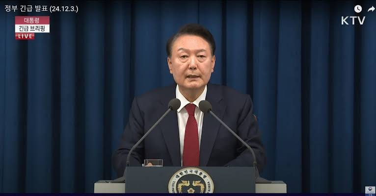 El presidente Yoon declaró la ley marcial en Corea del Sur, citando las amenazas de Corea del Norte y las “fuerzas antiestatales” internas. Afirma que los intentos de destitución sin precedentes de la oposición y los recortes presupuestarios han paralizado al gobierno. Promete medidas rápidas para “reconstruir y proteger” a la República de Corea.