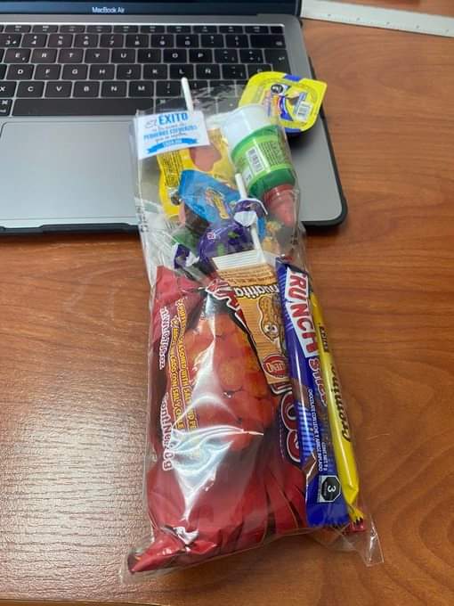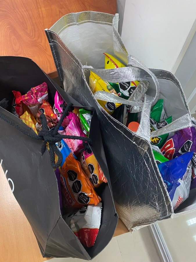 Explicó que la mujer tiene su mercancía en bolsas y las divide en “área de dulce, salado y coquitas en el refri. Todos contentos. (Faltan cigarros sueltos.).”