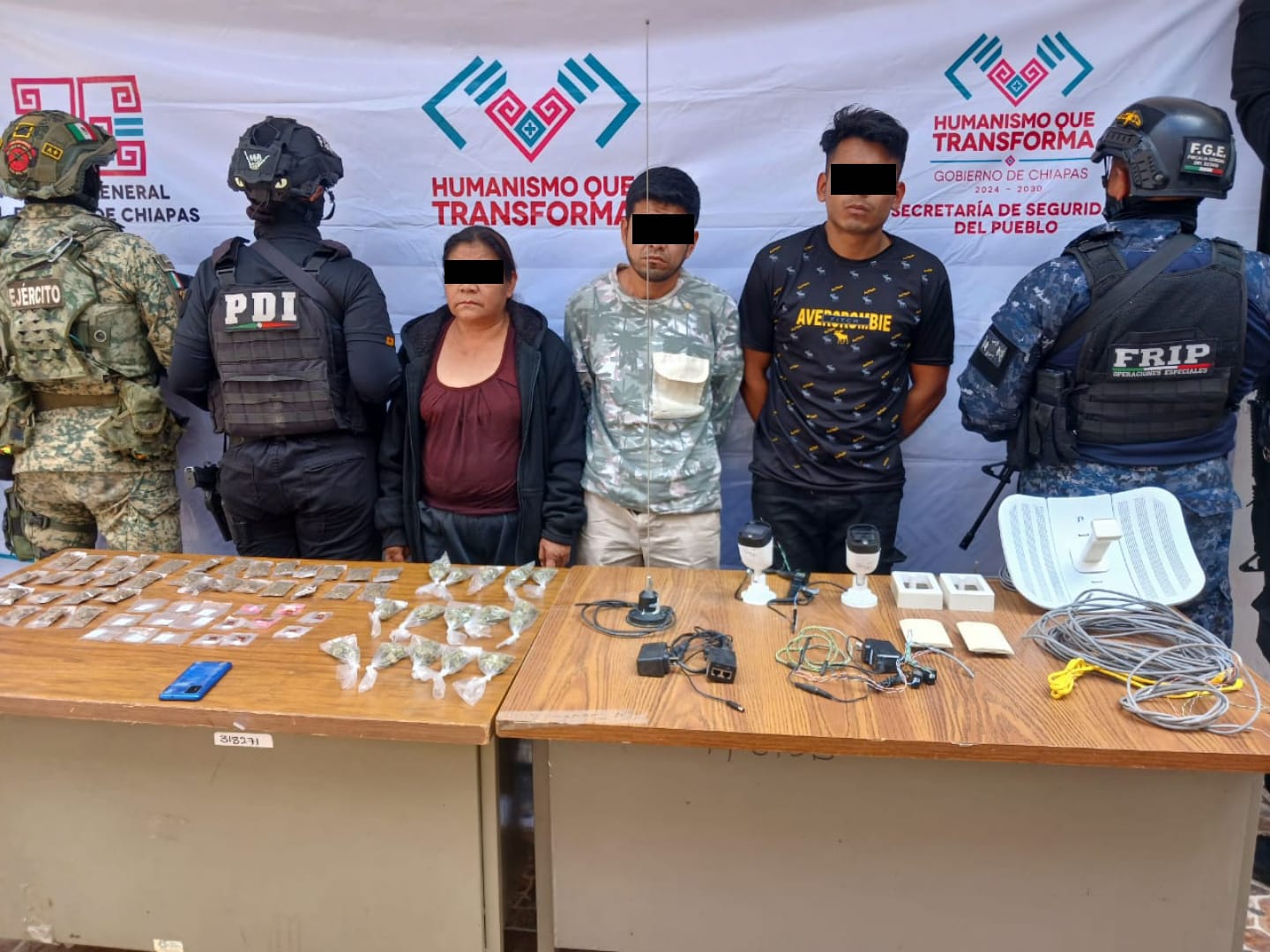 En el marco del Operativo de los 100 días, los elementos del orden se presentaron en la colonia Terrero Copalar, localizando las cámaras y desmantelando el equipo de grabación; además, realizaron la detención de Evelia “N”, Pedro “N” y Jhonatan “N”.