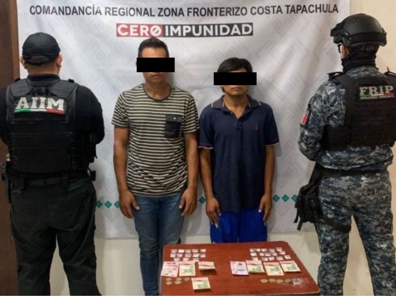 En operativo interinstitucional, la Secretaría de Seguridad del Pueblo (SSP) a través de la Fuerza de Reacción Inmediata Pakal (FRIP) y la Guardia Estatal Preventiva, en coordinación con la Agencia de Investigación e Inteligencia Ministerial (AIIM) de la Fiscalía General del Estado (FGE) y la Secretaría de Seguridad y Protección Ciudadana (SSPC) del Gobierno Federal, detuvieron a dos personas por el probable delito contra la salud, en el municipio de Huehuetán.