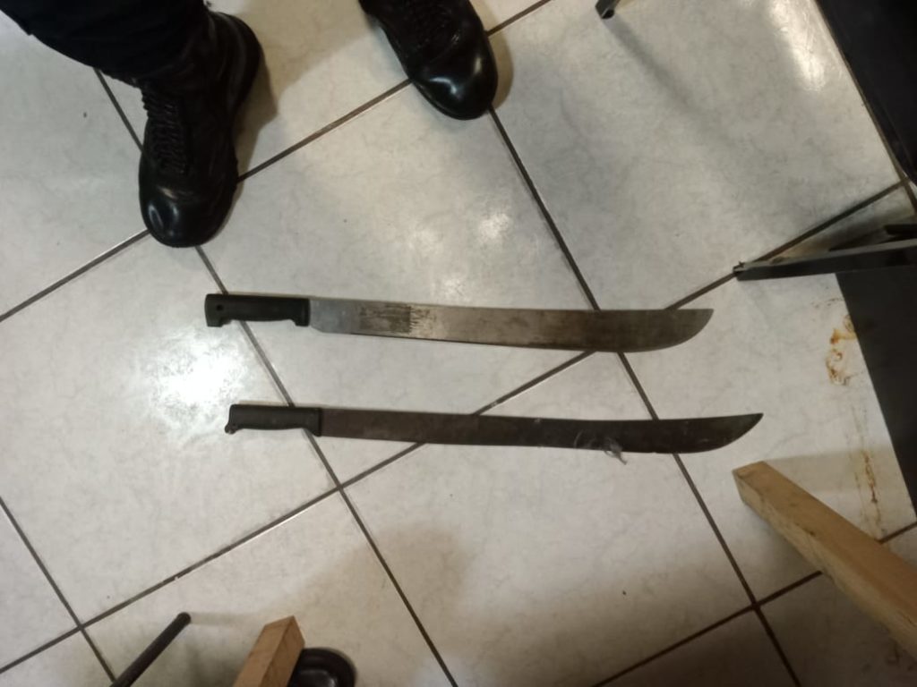 Dos mujeres que con machete en mano protagonizaron una riña, fueron detenidas por elementos de la Secretaría de Seguridad Pública y Protección Ciudadana Municipal (SSPyPCM) en calles del Fraccionamiento Andares del Soconusco, evitando con ello una desgracia mayor.