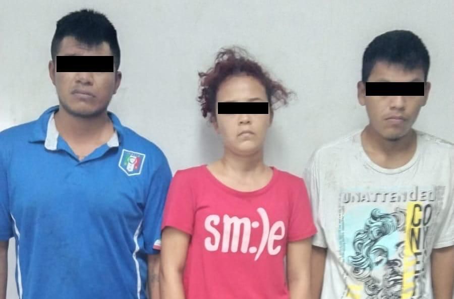 Con la participación de elementos de la Policía Estatal Preventiva y Policía Estatal Fronteriza, se detuvo a Fernanda “N”, Marlon Iván y Melitón “N”, a quienes se les aseguró un arma de fuego 380 milímetros, 5 cartuchos útiles y 60 envoltorios transparentes con al parecer marihuana, así como una motocicleta marca Dinamo.