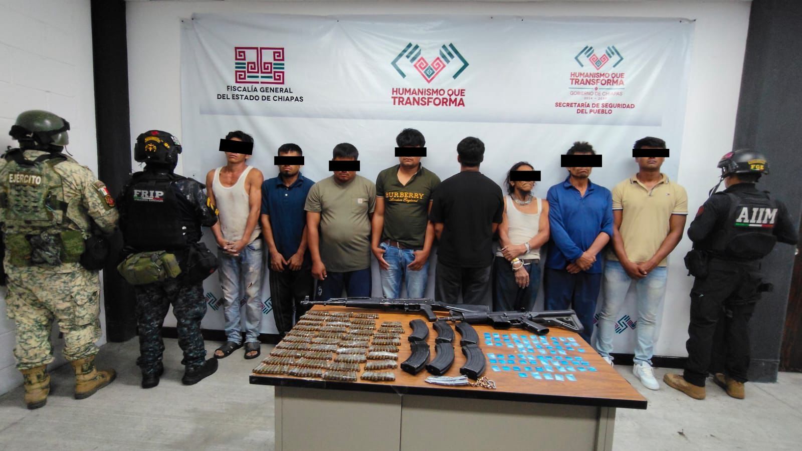 Elementos de la Secretaría de Seguridad del Pueblo (SSP) a través de la Fuerza de Reacción Inmediata Pakal (FRIP) en coordinación con la Agencia de Investigación e Inteligencia Ministerial (AIIM) de la Fiscalía General del Estado (FGE), el Ejército Mexicano y la Secretaría de Seguridad y Protección Ciudadana (SSPC) del Gobierno Federal, detuvieron a masculinos con armas de fuego y presuntos narcóticos en Jiquipilas.