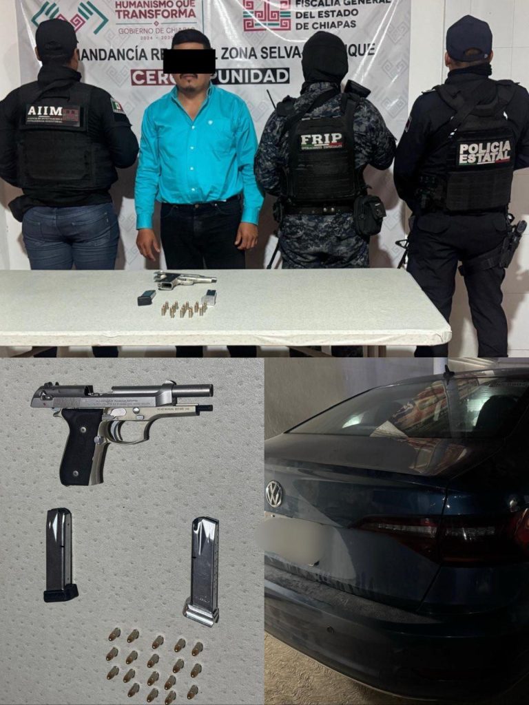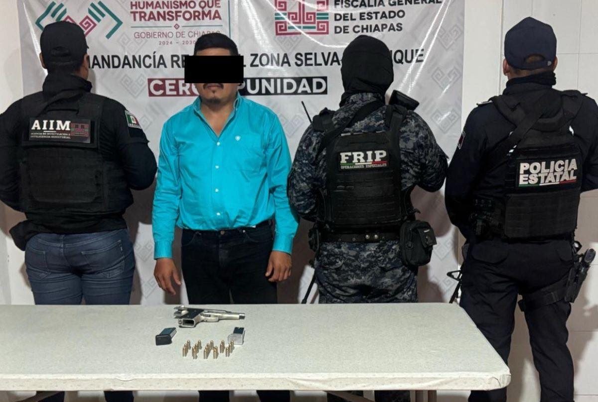 Con el objetivo de hacer cumplir la ley y garantizar el Estado de Derecho en la ciudadanía chiapaneca, la Secretaría de Seguridad del Pueblo (SSP), a través de la Fuerza de Reacción Inmediata Pakal (FRIP) y la Policía Estatal Preventiva (PEP), en coordinación con la Agencia de Investigación e Inteligencia Ministerial (AIIM) de la Fiscalía General del Estado (FGE) y la Secretaría de Seguridad y Protección Ciudadana (SSPC) del Gobierno Federal, detuvieron a un masculino por posesión de arma de fuego en Ocosingo.