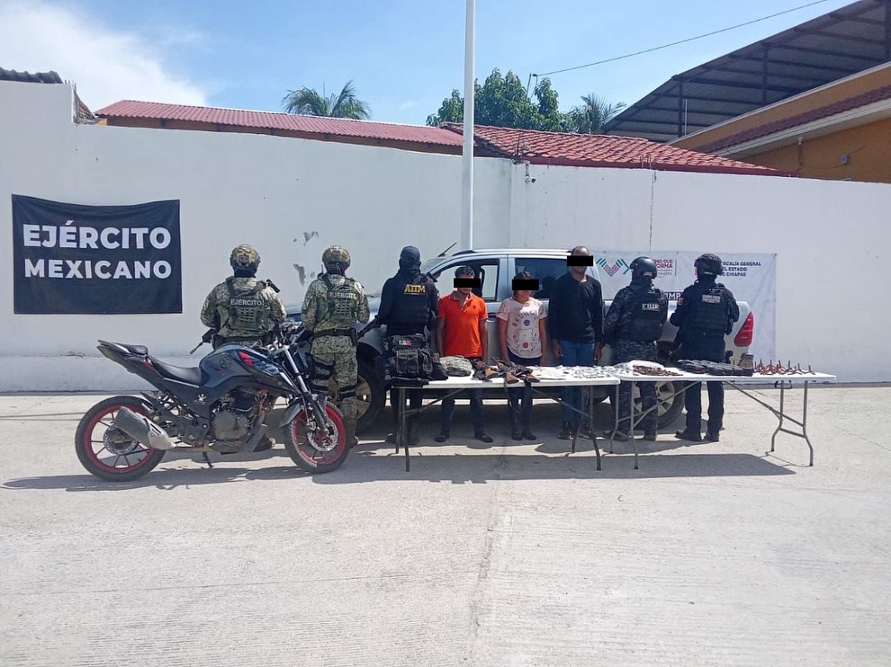 En operativo interinstitucional, la Secretaría de Seguridad del Pueblo (SSP) a través de la Fuerza de Reacción Inmediata Pakal (FRIP) y la Guardia Estatal Preventiva, en coordinación con la Agencia de Investigación e Inteligencia Ministerial (AIIM) de la Fiscalía General del Estado (FGE), Ejército Mexicano y la Secretaría de Seguridad y Protección Ciudadana (SSPC) del Gobierno Federal detuvieron a tres personas con armas de fuego, ponchallantas y presuntos narcóticos en el municipio de Villa Corzo.