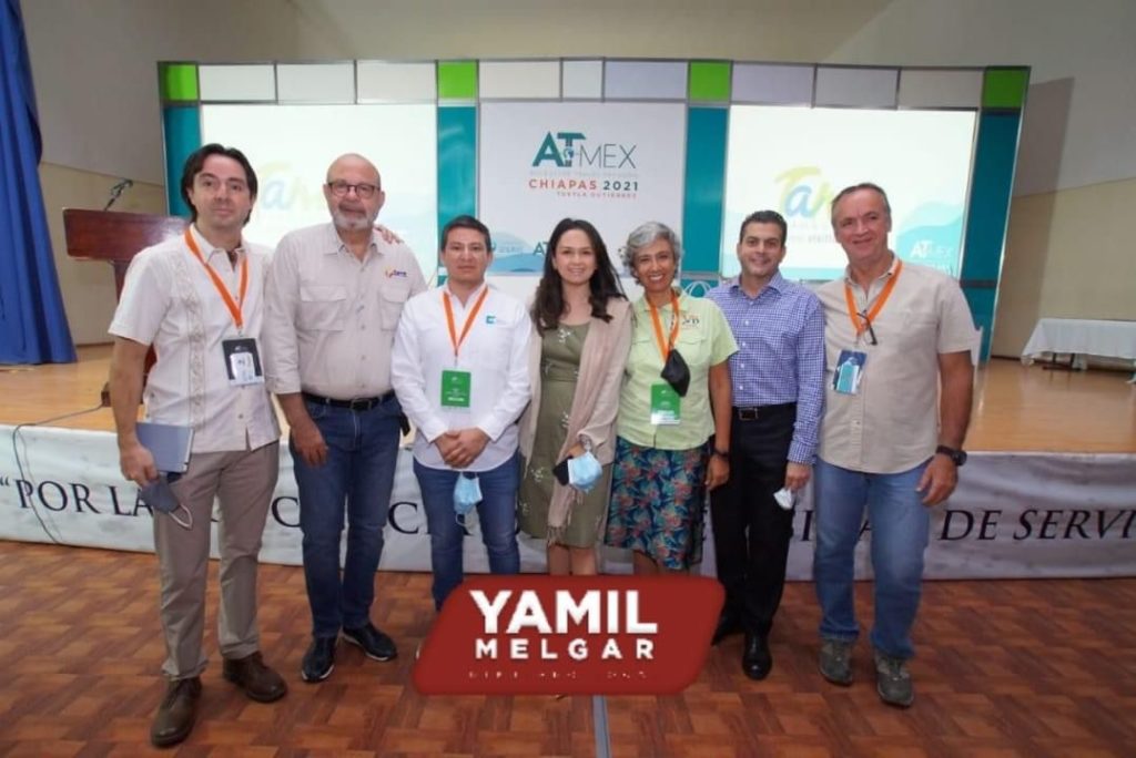 Acompañado de empresarios chiapanecos, y de los presidentes de la Comisión de Turismo federal y estatal, Jericó Abramo Masso y Flor de María Esponda, el diputado Yamil Melgar Bravo asistió a la Novena Edición de #ATMEX2021.