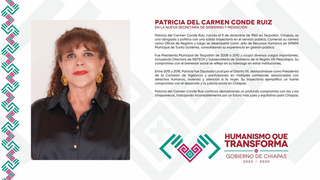 - Patricia del Carmen Conde Ruiz, en la nueva Secretaría de Gobierno y Mediación.