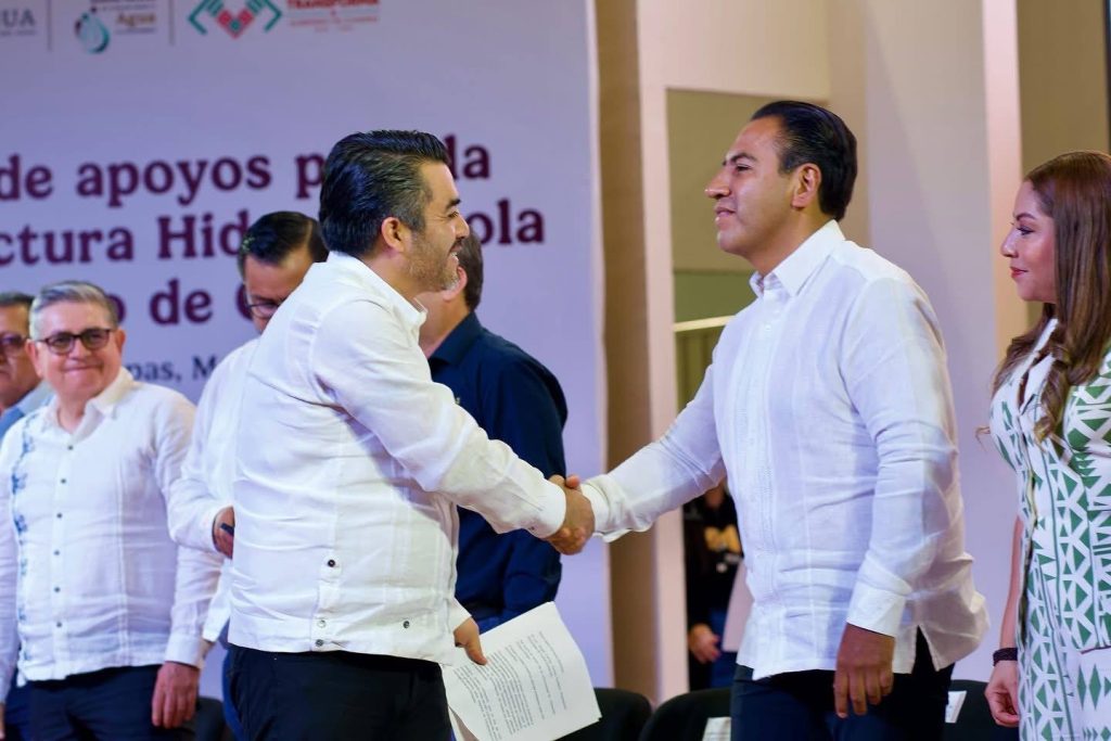 Durante la entrega de apoyos para la Infraestructura Hidroagrícola en el estado de Chiapas, donde se contó con la presencia del director general de la Comisión Nacional del Agua (Conagua), Efraín Morales López, el gobernador Eduardo Ramírez Aguilar reconoció el respaldo del Gobierno Federal a través de la inversión destinada a la rehabilitación y modernización de unidades de riego. Señaló que estas acciones impulsan la productividad del campo, fortalecen la seguridad alimentaria y mejoran las condiciones de vida de las familias rurales.