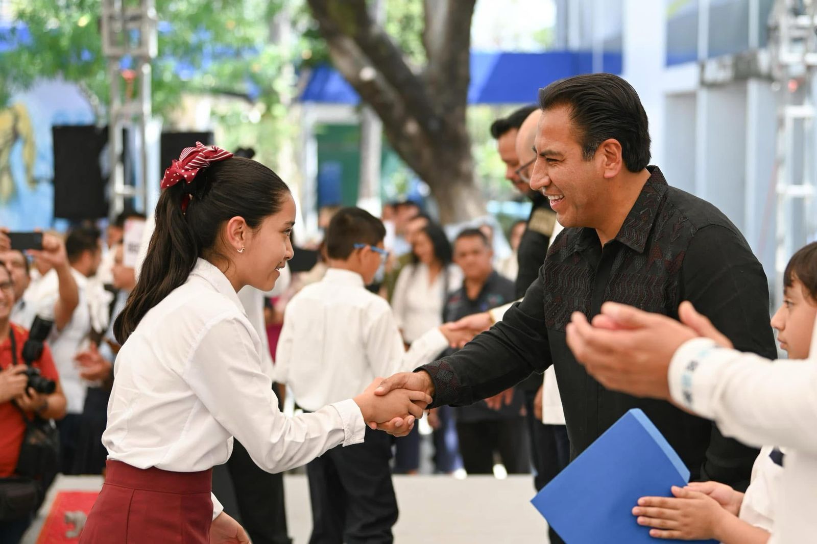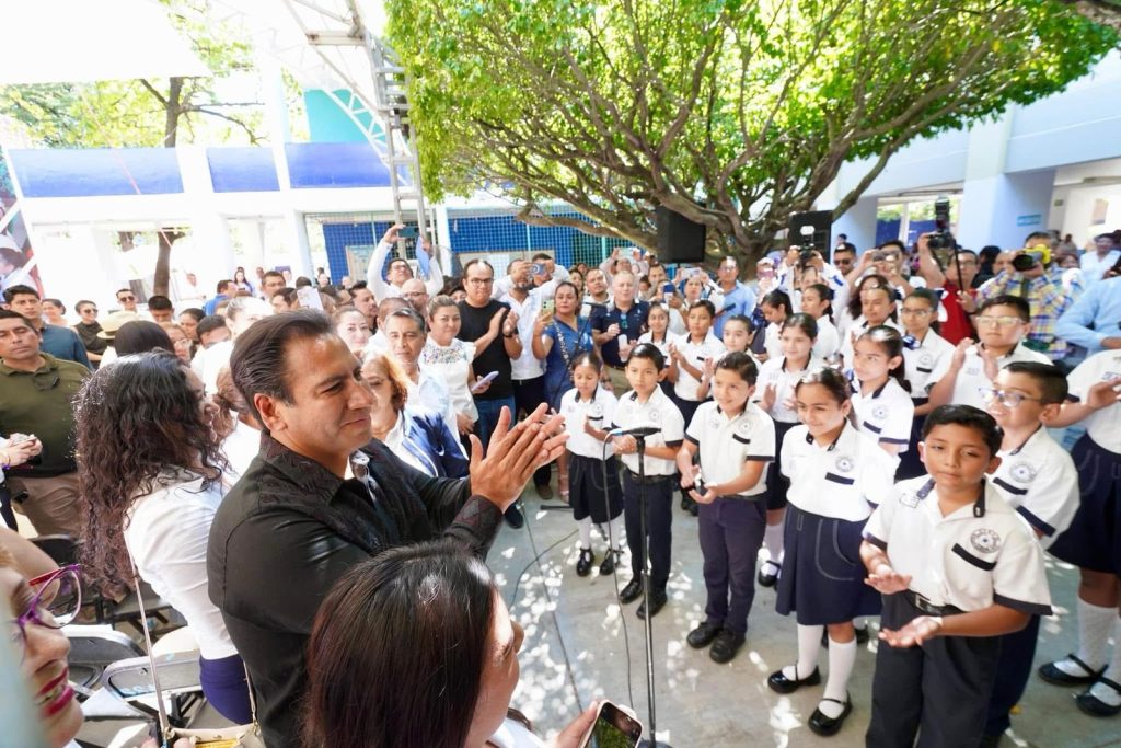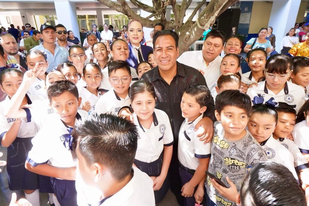 Posteriormente, el gobernador Eduardo Ramírez visitó el Centro de Educación Básica del Estado de Chiapas (Cebech) “Dr. Belisario Domínguez Palencia”, donde encabezó la entrega de becas estatales y reafirmó su compromiso con la educación y el bienestar de la niñez chiapaneca.
