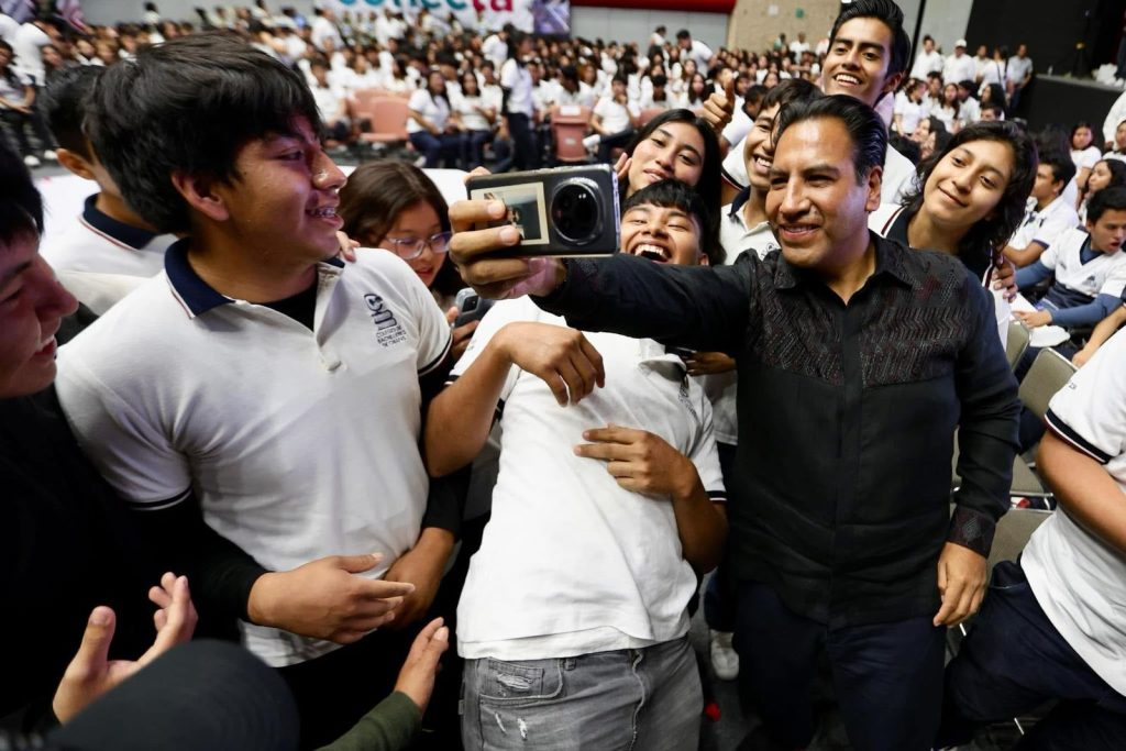 El Polyforum de Tuxtla Gutiérrez se llenó de energía y entusiasmo con la presencia de miles de estudiantes del Colegio de Bachilleres de Chiapas (Cobach), quienes recibieron con emoción al gobernador Eduardo Ramírez Aguilar. En un ambiente de alegría, aplausos y muchas selfies, celebraron la entrega de chips con telefonía celular e Internet móvil, como parte del Programa Conecta Chiapas, que busca fortalecer la conectividad y apoyar la economía de las familias.