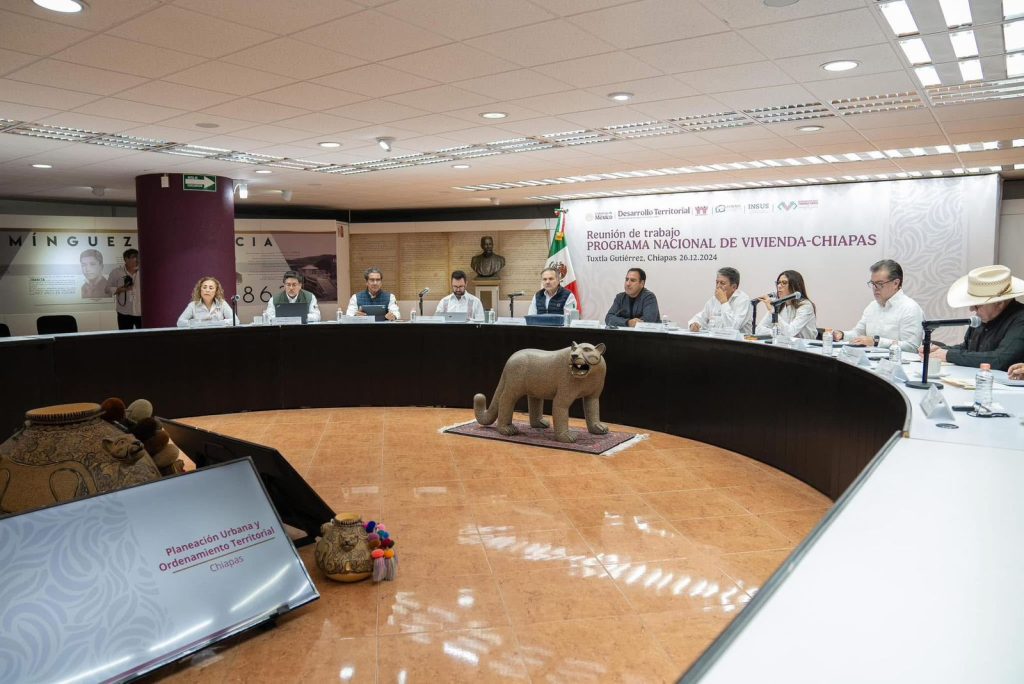 El gobernador Eduardo Ramírez Aguilar sostuvo una reunión de trabajo con el director general del Instituto del Fondo Nacional de la Vivienda para los Trabajadores (Infonavit), Octavio Romero Oropeza; el titular de la Comisión Nacional de Vivienda (Conavi), Rodrigo Chávez Contreras; la directora de Comunicación Social de la Secretaría de Desarrollo Agrario Territorial y Urbano (Sedatu), Anjanette Zebadúa Soto, y el titular del Instituto Nacional del Suelo Sustentable (Insus), José Alfonso Iracheta Carroll, donde se presentó el Programa Nacional de Vivienda-Chiapas, el cual plantea un total de 55 mil acciones para la entidad.