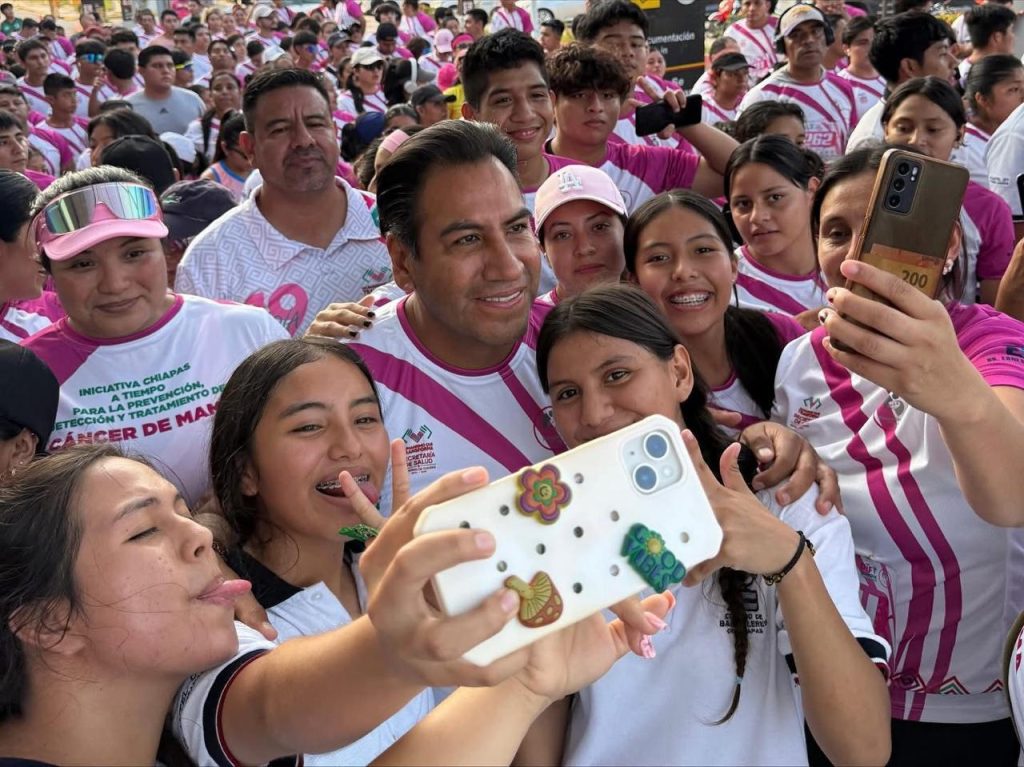 En el marco del Día Mundial contra el Cáncer de Mama, el gobernador Eduardo Ramírez Aguilar participó en la Tercera Carrera Contra el Cáncer de Mama, organizada por la Jurisdicción Sanitaria VI Selva y el Ayuntamiento de Palenque, con el objetivo de sensibilizar a la población sobre la importancia de la detección temprana y recordar que un diagnóstico oportuno puede salvar vidas.