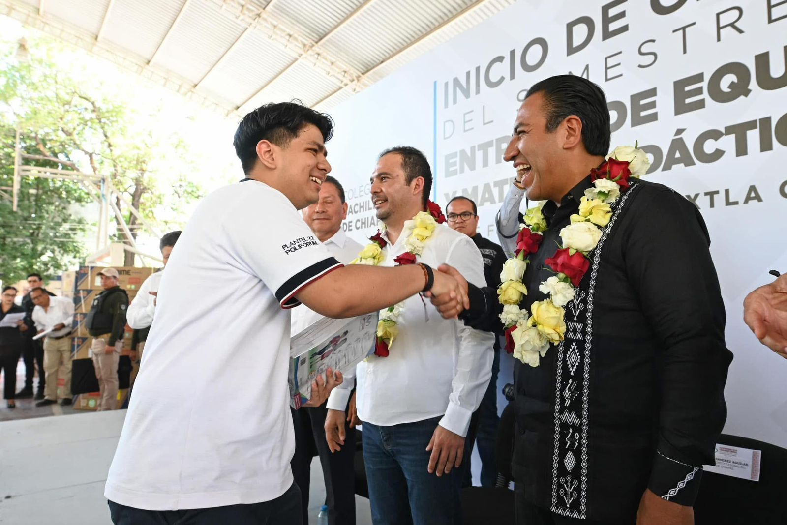 Por su parte, el alcalde de Tuxtla Gutiérrez, Angel Torres Culebro, reconoció los esfuerzos realizados en materia de seguridad, los cuales permiten que la comunidad estudiantil asista a sus escuelas y regrese a casa con mayor tranquilidad. De igual forma, celebró la entrega de herramientas tecnológicas, que contribuirán a mejorar el acceso al conocimiento y la formación de las y los jóvenes chiapanecos.