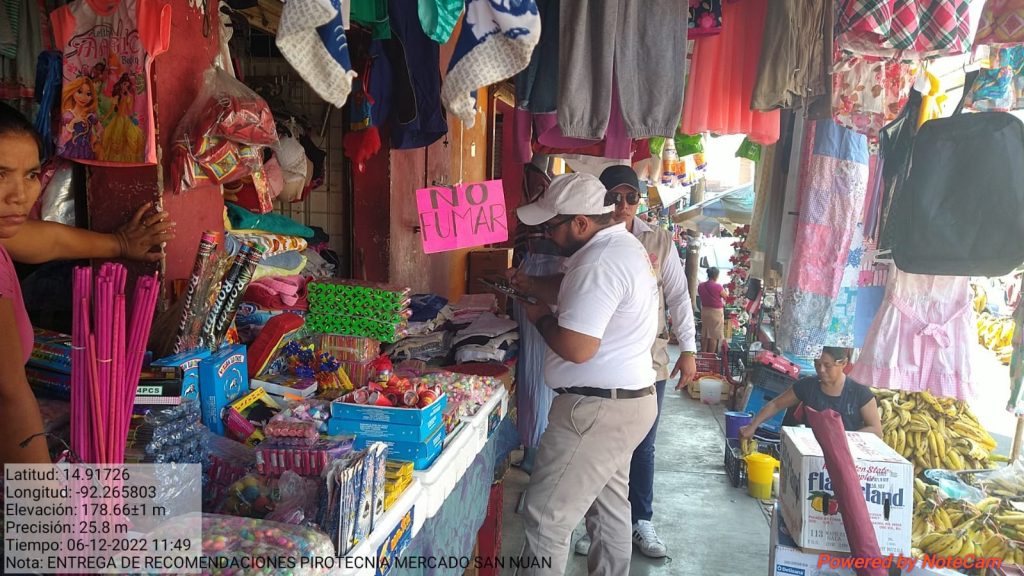 La Dirección de Protección Civil Municipal (DPCM) a través del Departamento de Identificación y Análisis de Riesgos, inició recorridos de identificación y emisión de recomendaciones de medidas de seguridad y prevención a vendedores de pirotecnia en mercados y tianguis de Tapachula.