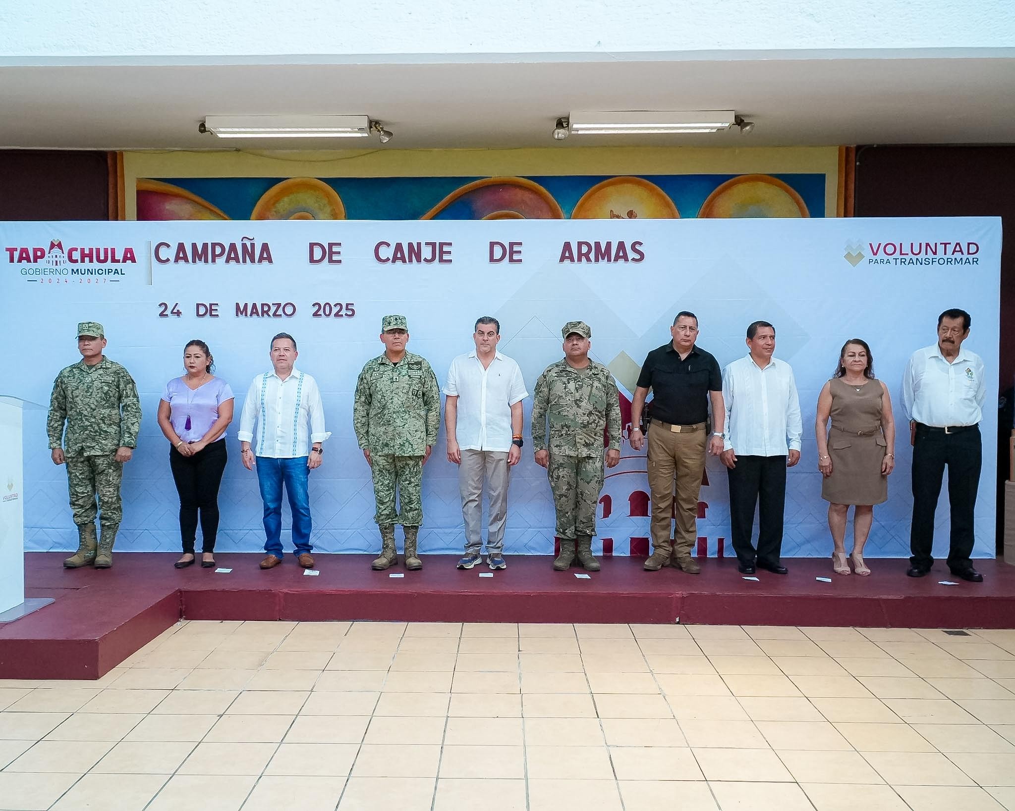 En la explanada interna del Palacio Municipal, el edil tapachulteco, resaltó: “La paz se construye con la voluntad de todos, por eso, me da gusto que muchas personas decidan entregar su arma y cambiarla por un futuro más seguro para sus hijos, avanzando en la construcción de la armonía social y la seguridad”.