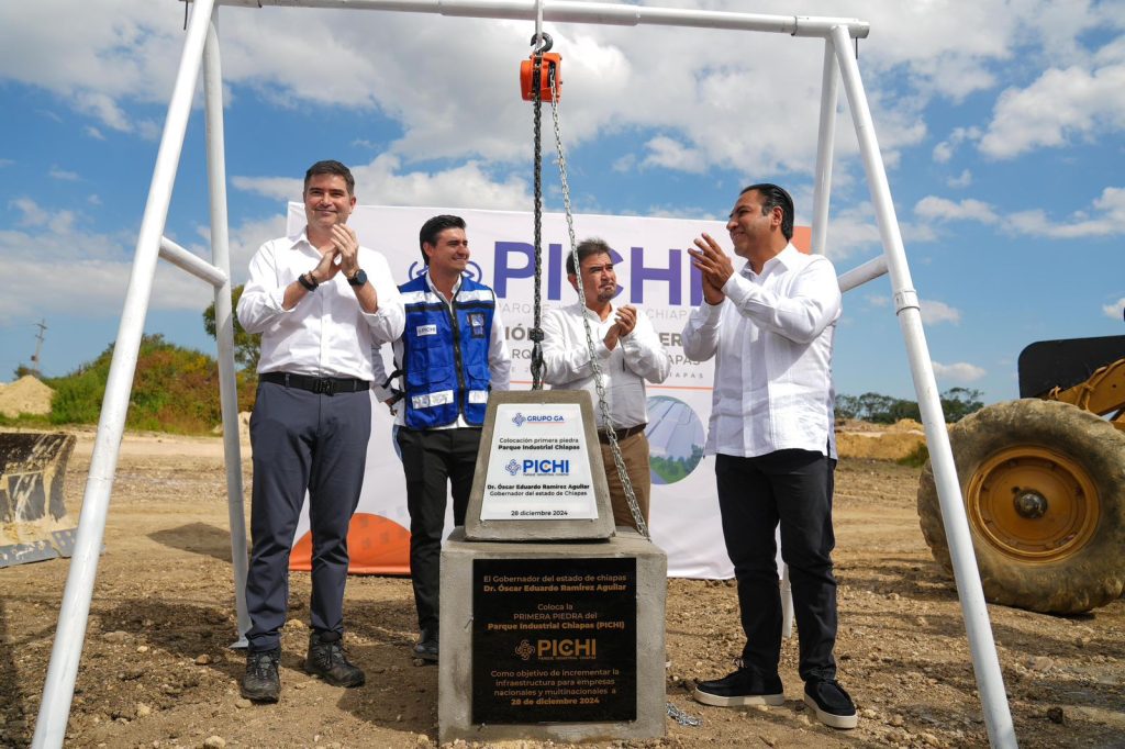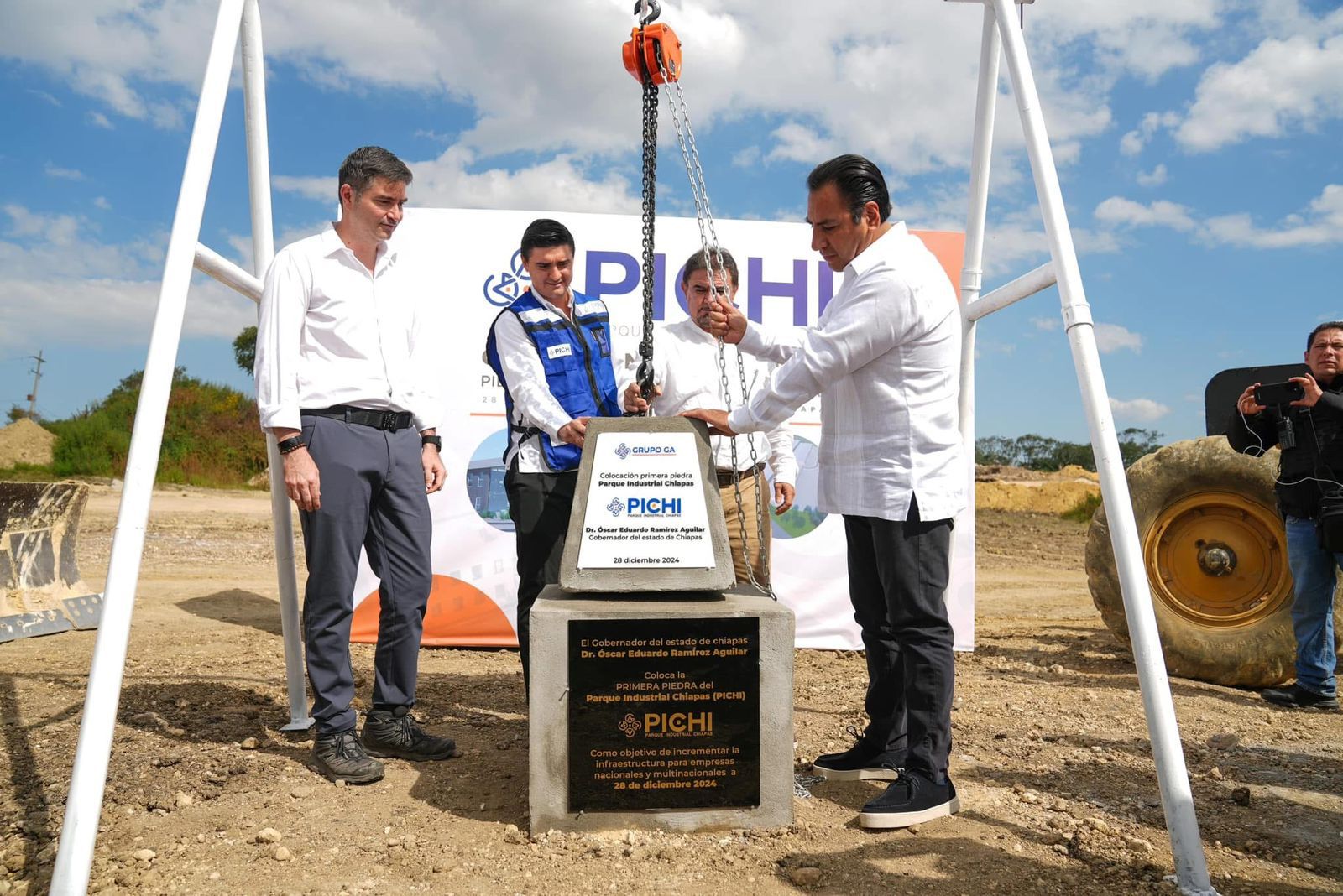 El gobernador Eduardo Ramírez Aguilar encabezó la colocación de la primera piedra del Parque Industrial Chiapas (Pichi), en el municipio de Berriozábal, donde resaltó que en la Nueva ERA se está aplicando la ley con determinación y sin miedo para lograr la paz, lo que es fundamental para el bienestar del pueblo y el progreso del estado.