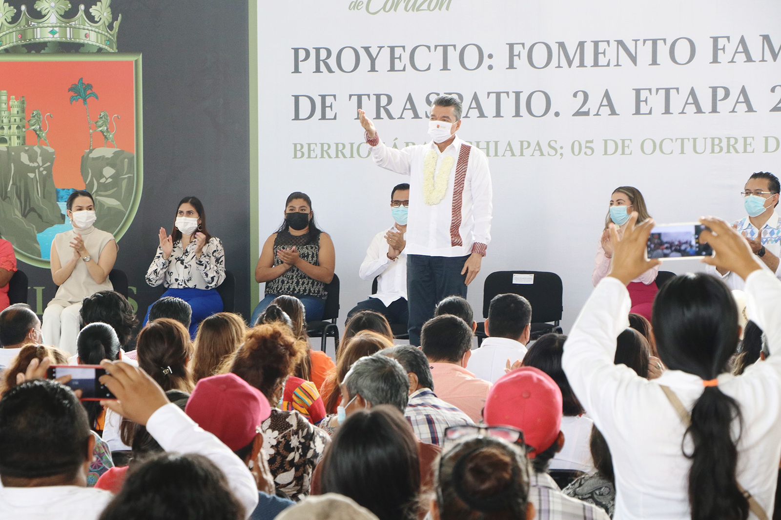 Desde el municipio de Berriozábal, el gobernador Rutilio Escandón Cadenas encabezó el arranque de la Segunda Entrega de Proyectos de Fomento Familiar a la Producción de Traspatio 2022, donde resaltó que, como resultado del trabajo responsable y trasparente en la ejecución de los recursos, este programa ha contribuido de manera efectiva en el combate a la pobreza y el fomento a la soberanía y autosuficiencia alimentaria, principalmente en las zonas de alta marginación.