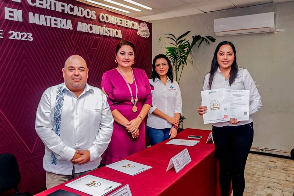 La encargada del despacho de la presidencia, regidora Gladiola Soto Soto, destacó que la entrega de certificaciones de competencia laboral en procesos tecnicos de archivo en trámite y de coordinación normativa y operativa de la administración de archivos y la gestión documental del sistema institucional de archivos a los servidores públicos de las dependencias municipales, es un avance importante para su profesionalización en beneficio de los tapachultecos.