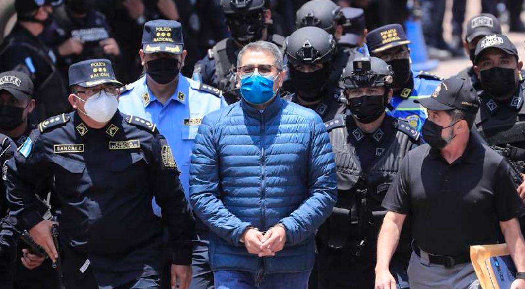 La extradición a Estados Unidos del expresidente hondureño Juan Orlando Hernández inició este jueves con su traslado, esposado de manos, a la Base Aérea Hernán Acosta Mejía, de donde será llevado en un avión hacia Nueva York, para ser enjuiciado por tres cargos asociados al narcotráfico.