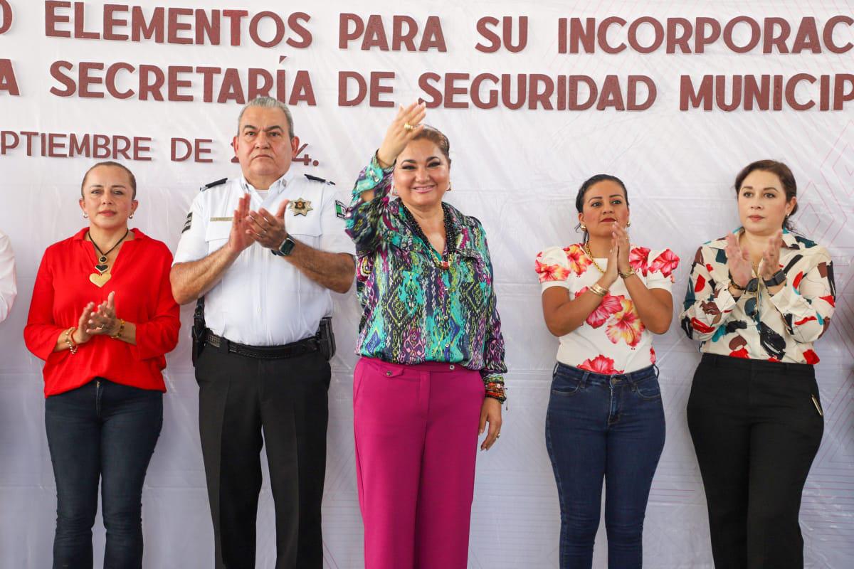Asimismo, la alcaldesa dio la bienvenida a 70 nuevos policías municipales que luego de tomar cursos de capacitación y formación inicial y de recibir su certificación correspondiente se suman a las acciones para garantizar seguridad y tranquilidad a los tapachultecos.