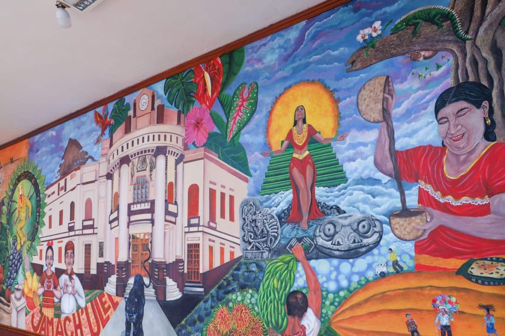 A su vez, la secretaria de Economía y Turismo Municipal, Sheila Horita Ocampo, mencionó que el mural “Tapachula en la era de la Chiapanequidad”, representa lo que es nuestro municipio, “esta obra forma parte de los espacios arquitectónicos y busca provocar en el espectador sentimientos de identidad y orgullo”.