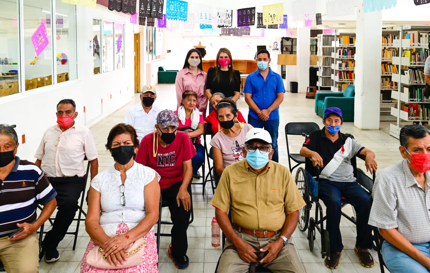 En la Biblioteca Pública Regional “Fray Matías de Córdova”, acompañada por la Presidenta Honorífica del Sistema DIF Municipal, Irene Rubiera Urbina, la presidenta de Tapachula refrendó el compromiso de trabajar todos los días en favor de la población vulnerable, entre los que se atiende de manera especial a los adultos mayores.