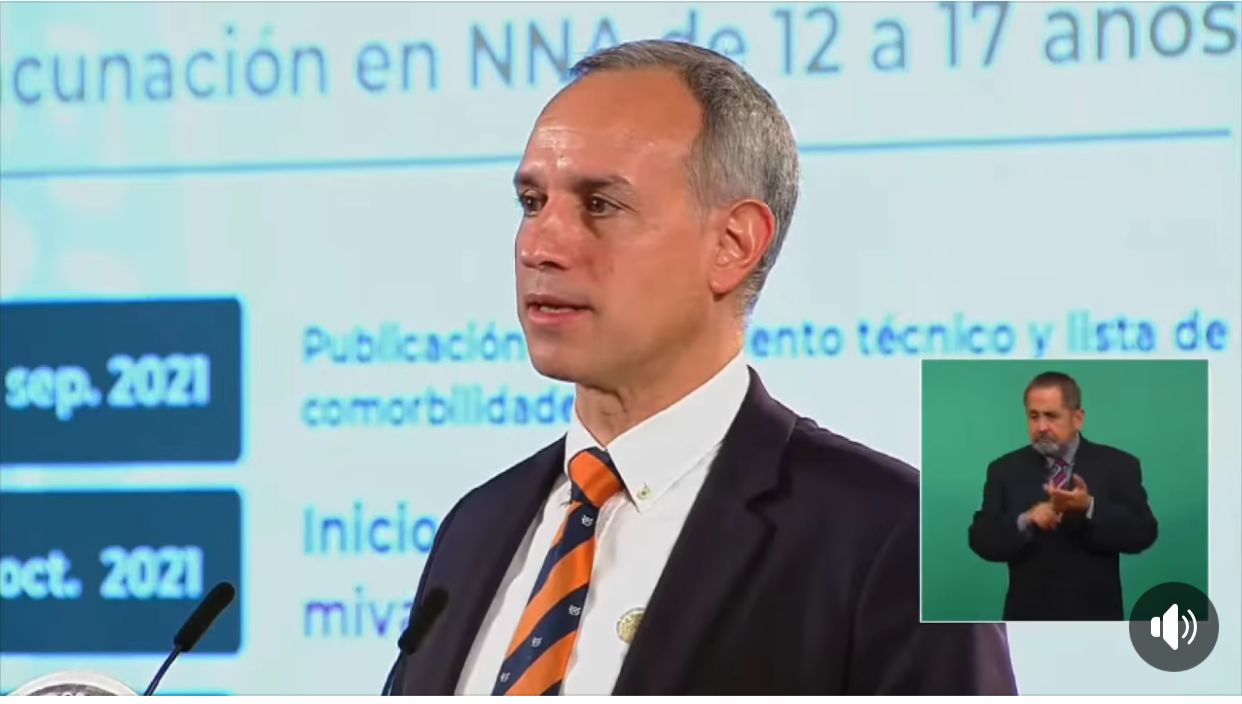 El subsecretario de Prevención y Promoción de la Salud, Hugo López-Gatell Ramírez estimó que entre 750 mil o hasta un millón 500 mil niñas, niños y adolescentes (12 a 17 años) con enfermedades renales, congénitas, metabólicas y diabetes, entre otras, podrán recibir la #Vacuna contra #SARSCoV2.