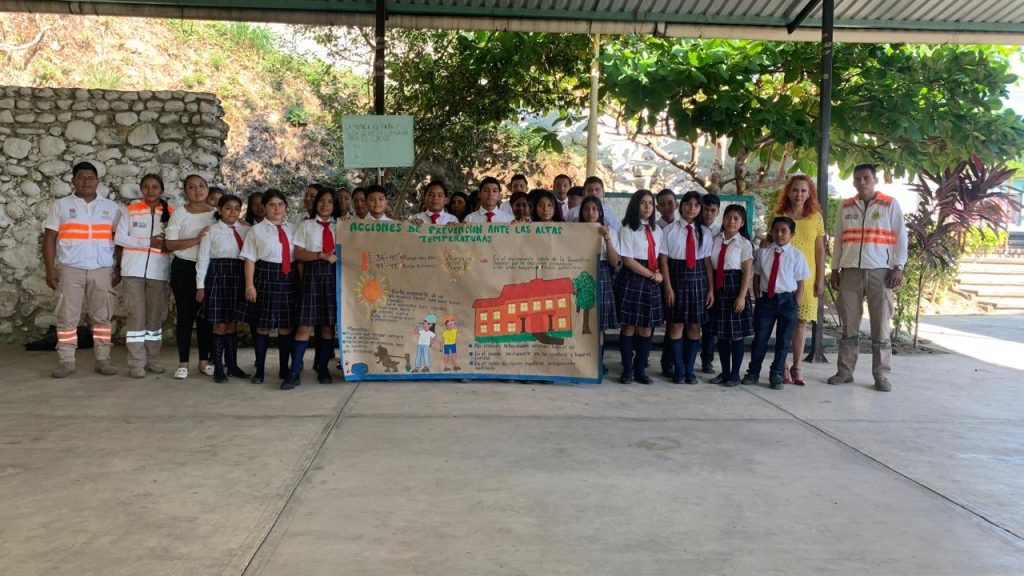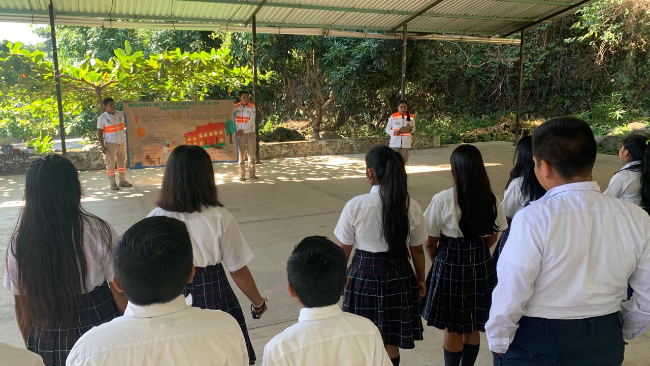Tuxtla Chico, Chiapas a 17 de abril de 2024. La Dirección de Protección Civil Municipal de Tuxtla Chico asistió a las instalaciones de la Escuela Telesecundaria “José Francisco Blake Mora”, para impartir el tema “prevención ante las altas temperaturas”, como parte de las acciones establecidas por el Programa de Escuelas Resilientes.