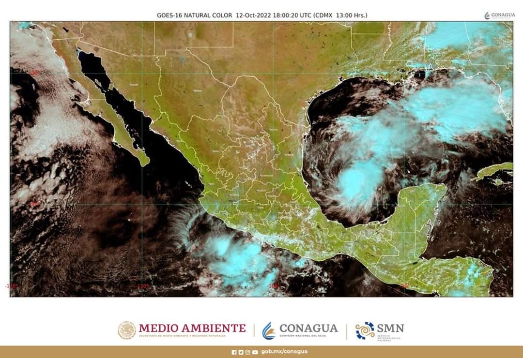 Se mantiene el pronóstico de lluvias puntuales intensas (de 75 a 150 milímetros [mm]) en regiones de Puebla y Veracruz; muy fuertes (de 50 a 75 mm) en zonas de Chiapas, Oaxaca y Tabasco, y fuertes (de 25 a 50 mm) en Campeche y Tamaulipas.