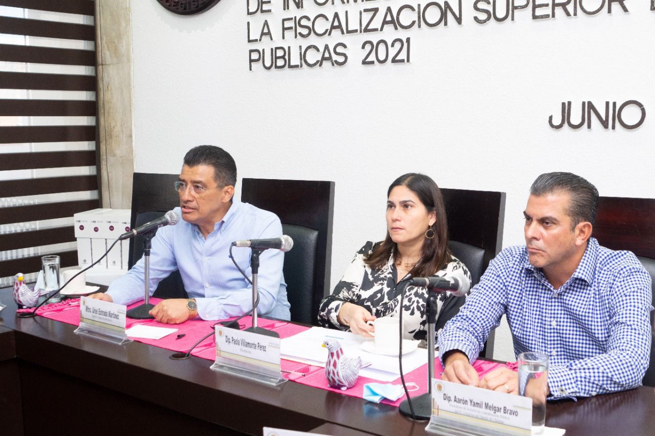 Cumpliendo con los principios de la 4ª transformación, tanto el Gobierno del Estado como el Poder Legislativo trabajan priorizando la transparencia y rendición de cuentas, dijo la diputada Paola Villamontes Pérez presidenta de la Comisión de Vigilancia al recibir de manos de José Uriel Estrada Martínez, titular de la Auditoria Superior del Estado la Cuenta Pública 2021.