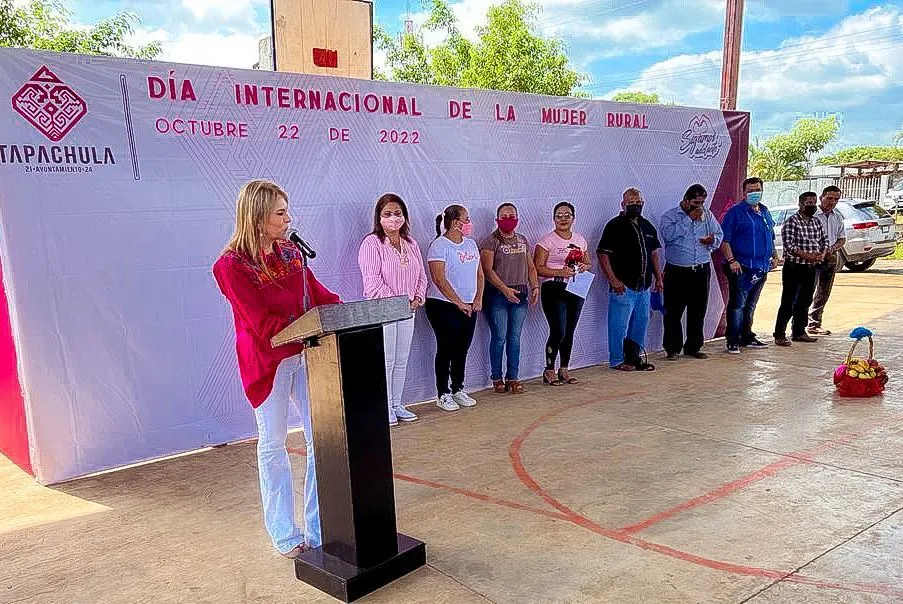 En el ejido Unión Miramar, la presidenta municipal de Tapachula, Rosa Irene Urbina Castañeda celebró el Día internacional de la Mujer Rural – que se conmemoró el pasado 15 de octubre-, en donde destacó el poder de la mujeres del campo, quienes gracias a su fuerza, liderazgo y pasión son líderes en la lucha contra la pobreza y representan una fortaleza para Tapachula.