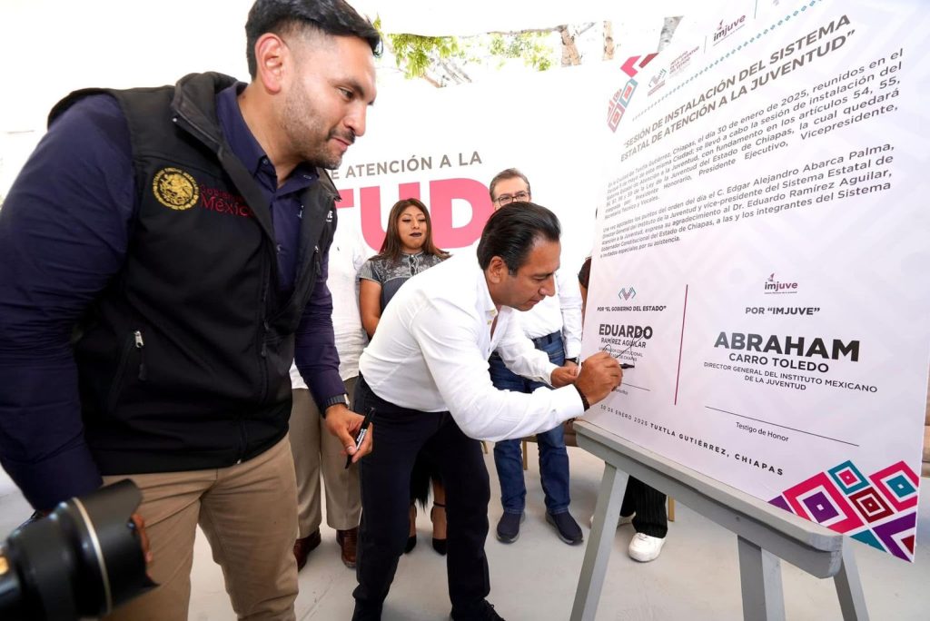 El gobernador Eduardo Ramírez Aguilar encabezó la instalación del Sistema Estatal de Atención a la Juventud, acompañado por el director general del Instituto Mexicano de la Juventud (Imjuve), Abraham Eugenio Carro Toledo. Durante el evento, reafirmó el compromiso de su gobierno de impulsar un gran movimiento de conciencia juvenil, reconociendo el papel fundamental de las nuevas generaciones en la transformación de Chiapas.