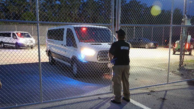 Llegan los primeros migrantes al centro de detención “Alligator Alcatraz” en Florida.