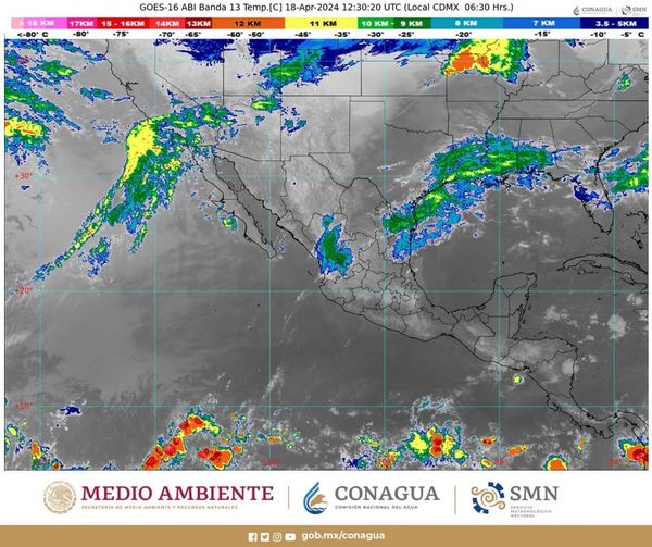 En el transcurso del día, continuará la onda de calor en México, con ambiente de caluroso a muy caluroso sobre el territorio nacional, por lo que se pronostican temperaturas máximas superiores a 45 grados Celsius en Campeche, Chiapas, Guerrero, Michoacán, Oaxaca, Tabasco y Veracruz; de 40 a 45 grados en Coahuila, Colima, norte de Hidalgo, Jalisco, Morelos, Nayarit, Nuevo León, San Luis Potosí, Sinaloa, Sonora, Tamaulipas, Yucatán y Zacatecas; de 35 a 40 grados en Aguascalientes, Baja California, Baja California Sur, Chihuahua, Durango, el suroeste del Estado de México, Guanajuato, norte y suroeste de Puebla, Querétaro y Quintana Roo, y de 30 a 35 grados Celsius en la Ciudad de México y Tlaxcala.